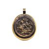 Κωνσταντινάτο με ορείχαλκο, αντίγραφο νομίσματος της βυζαντινής αυτοκρατορίας. Στη μπροστινή όψη του νομίσματος απεικονίζονται ο Άγιος Κωνσταντίνος και η Αγία Ελένη, ενώ πίσω Ιησούς Χριστός, ο Παντοκράτωρ. Όλα αυτά περιτριγυρίζονται περίτεχνα από χρυσό στεφάνι 14ων καρατίων .